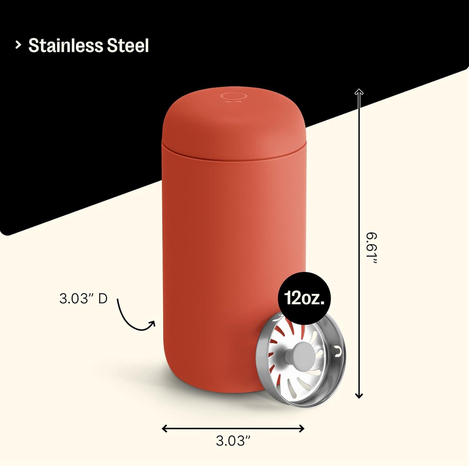 imageFellow 12 oz Carter Move Travel Mug  VacuumInsulated Stainless Steel Travel Coffee Mug  Coffee Tumbler with Ceramic Interior and Splash Guard  Mint ChipCorduroy Red