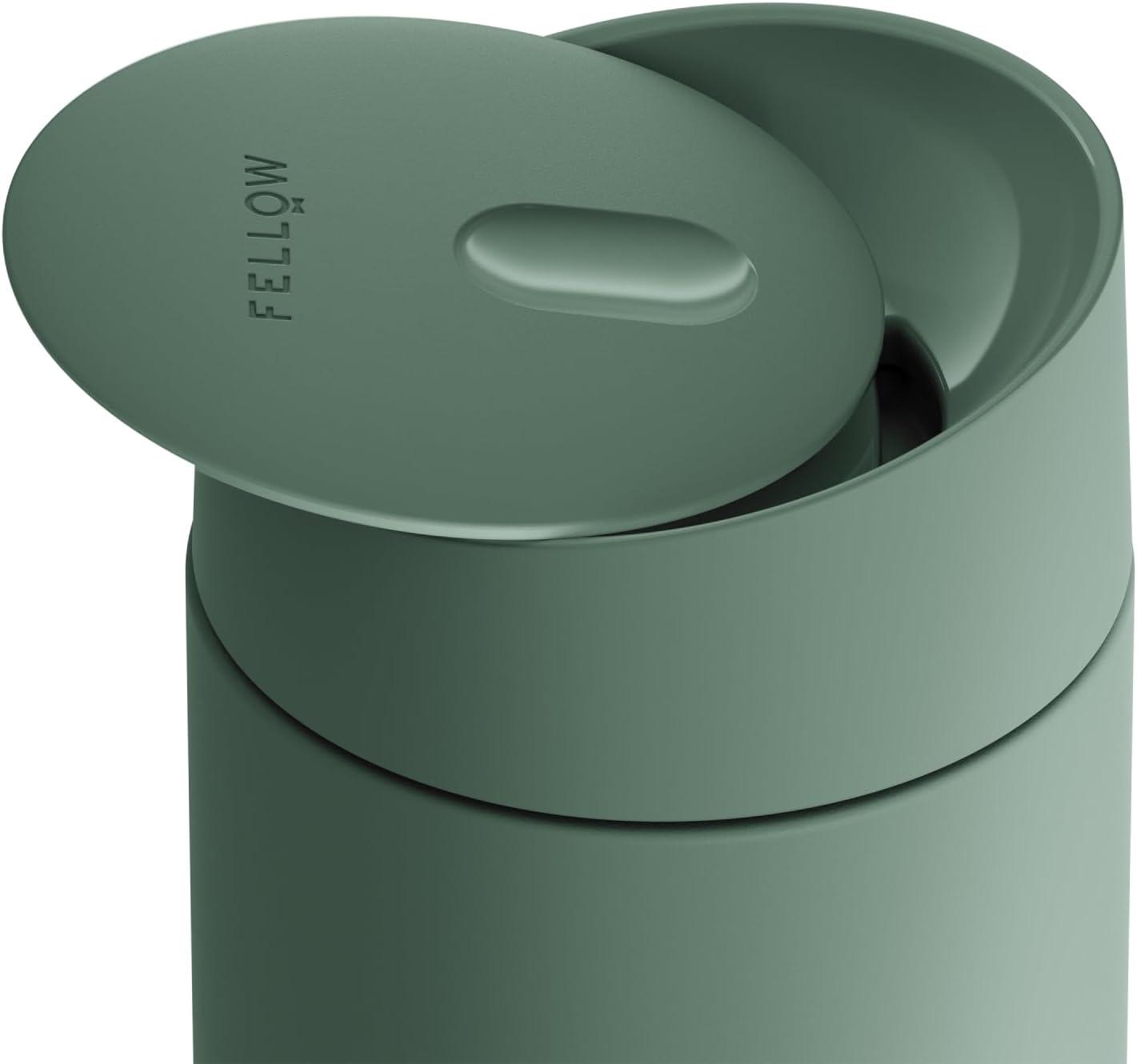 Fellow 12 oz Carter Slide Travel Coffee Mug with Slide-Lock lid – Leak Proof To-Go Coffee Tumbler with Ceramic Interior and Vacuum-Insulated Stainless Steel – Coffee Cups – Matte Black(Smoke Green)