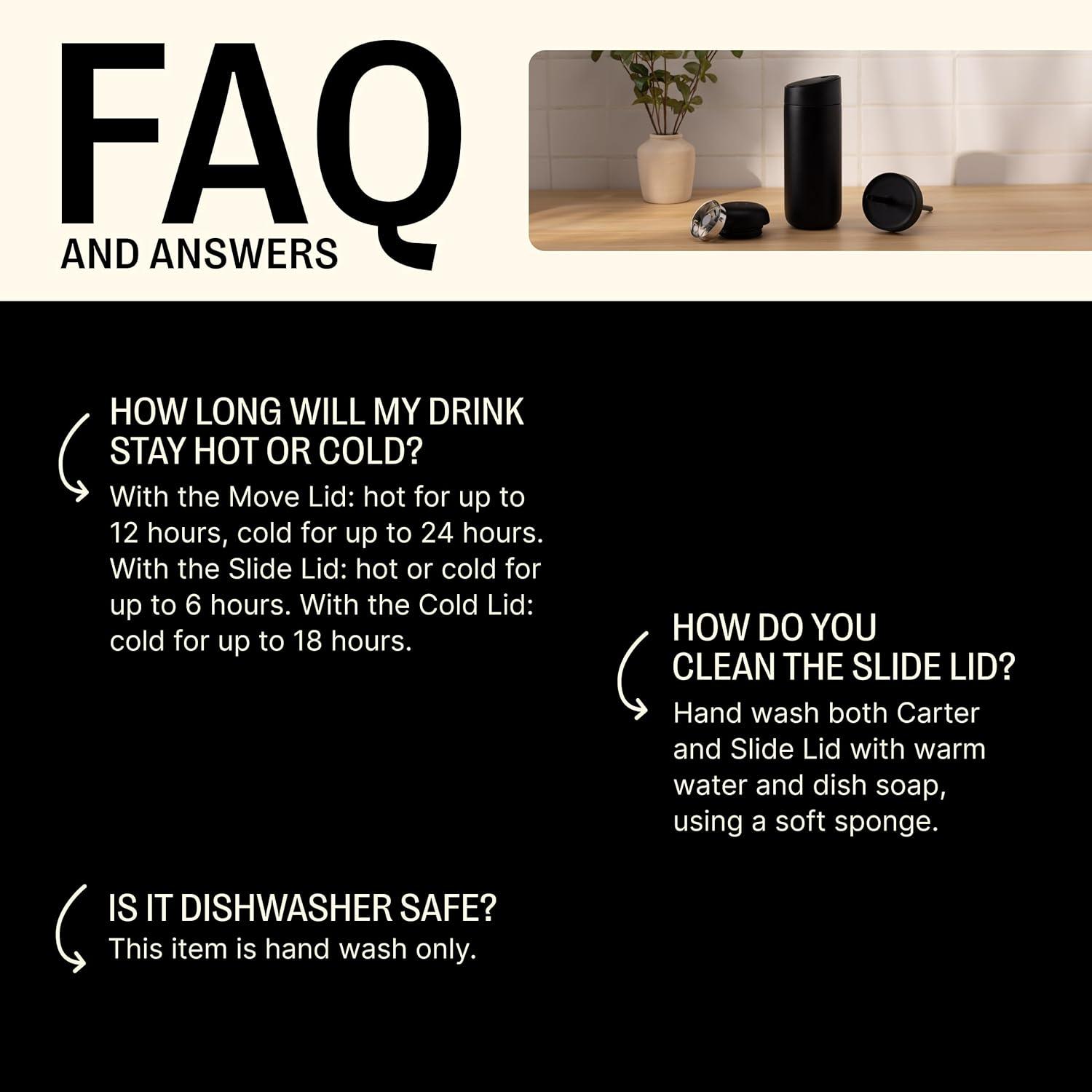 DISHWASHER SAFE: Spend less time washing your travel tumbler by hand. Simply pop your Carter and lid into the dishwasher to get them clean. The interior ceramic coating will come out clean.