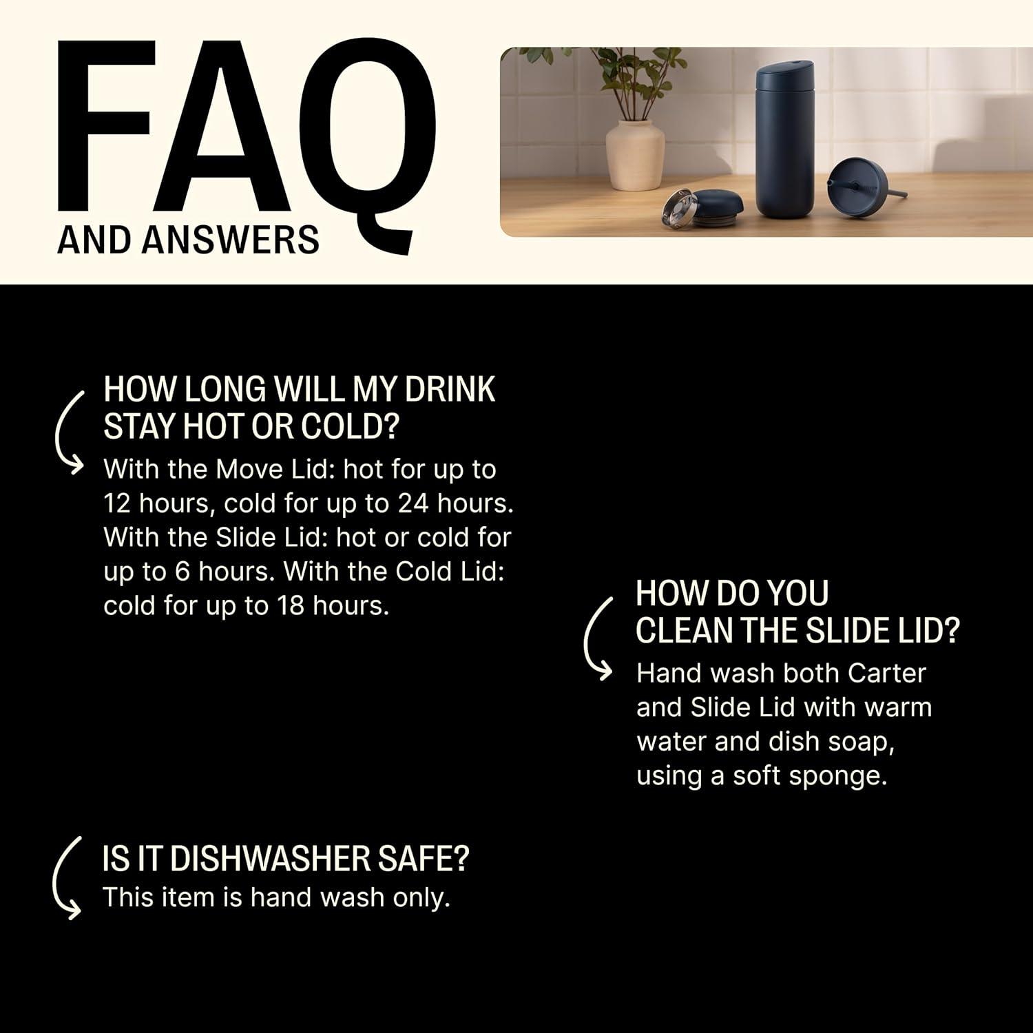 DISHWASHER SAFE: Spend less time washing your travel tumbler by hand. Simply pop your Carter and lid into the dishwasher to get them clean. The interior ceramic coating will come out clean.