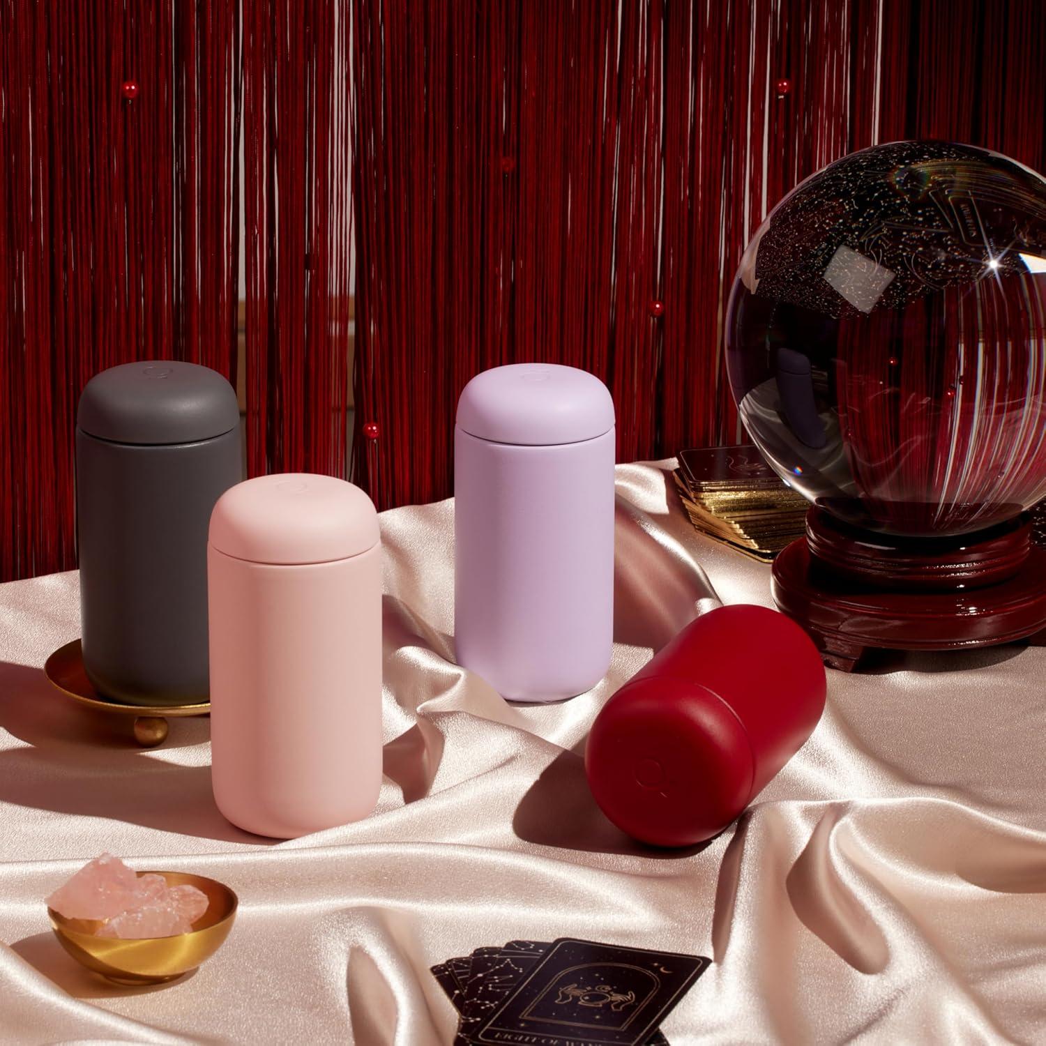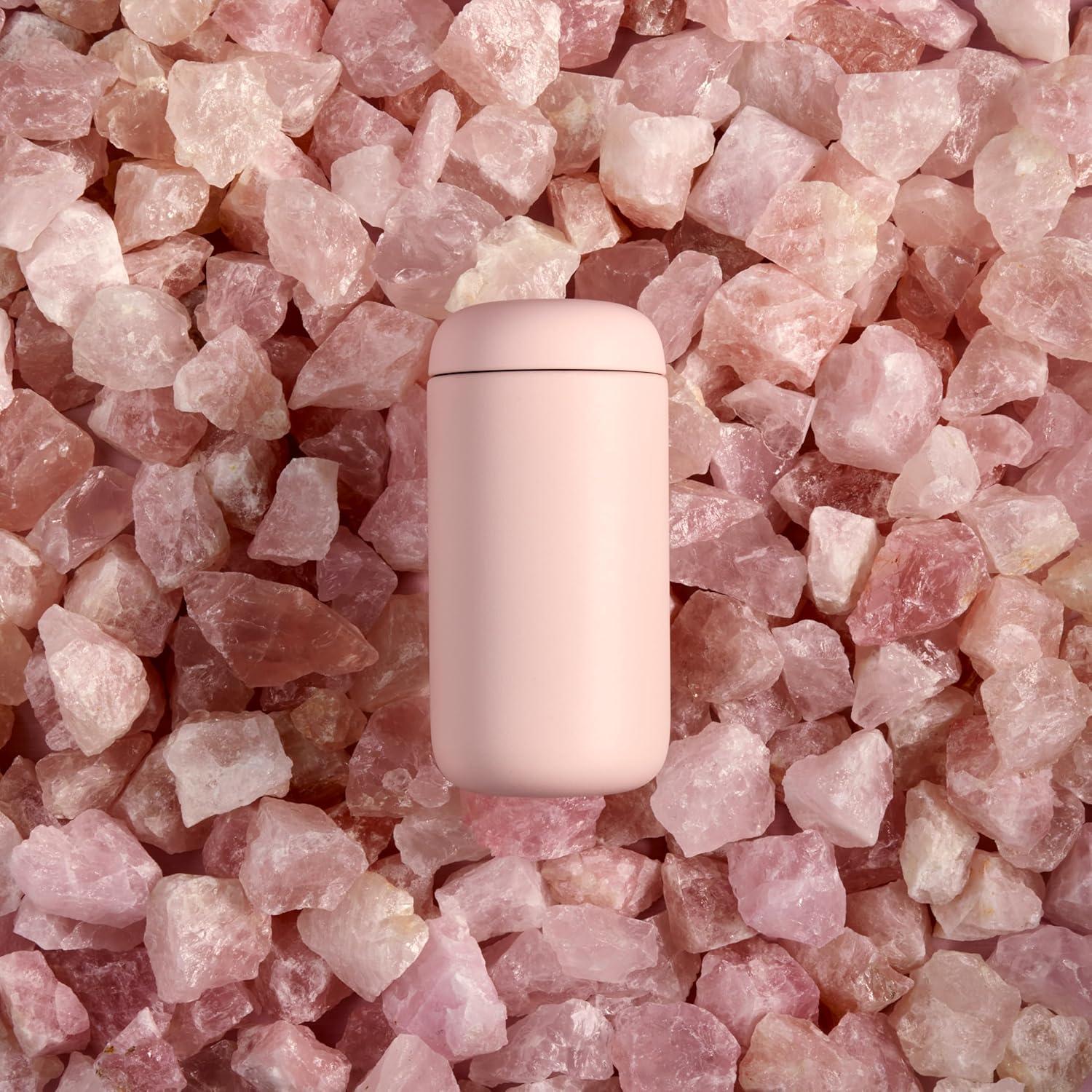 Fellow 16 oz Carter Move Travel Mug - Vacuum-Insulated Stainless Steel Travel Coffee Mug - Coffee Tumbler with Ceramic Interior and Splash Guard - Cargo Green(Warm Pink)