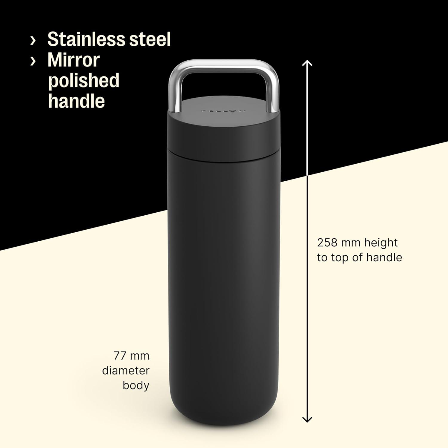 Fellow 20 oz Carter Carry Vacuum Insulated Tumbler for Water, Tea, Coffee, Smoothies, & more - Stainless Steel - Keeps Heat for 12 Hours/Stays Cold for 24 Hours-Leak-Proof Seal-Slim Width-Sienna(Matte Black)