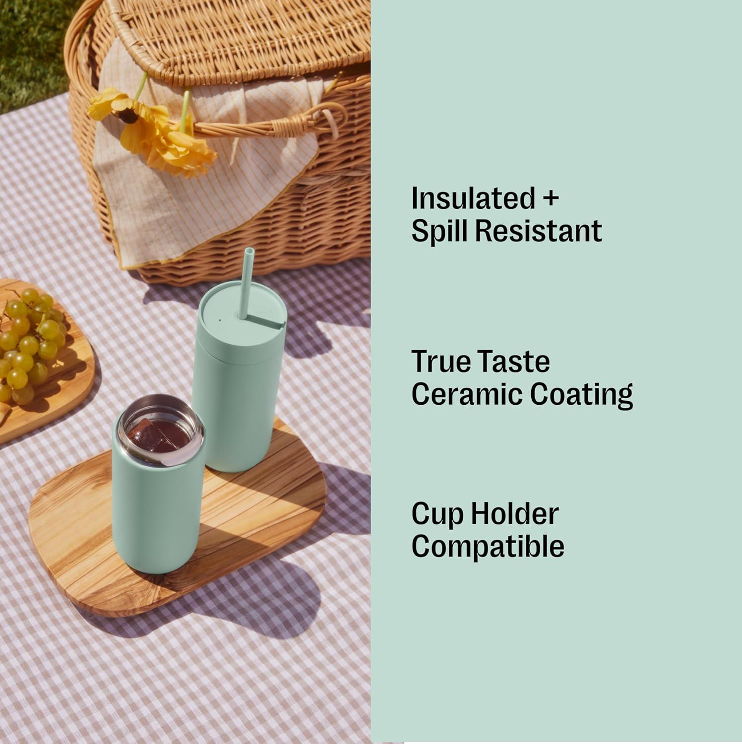 Fellow 20 oz Carter Cold Travel Mug for Water, Iced Tea, Coffee, Smoothies, Iced Coffee & more - Stainless Steel Vacuum-Insulated Iced Coffee tumbler with Spill Resistant lid and straw - Matte White