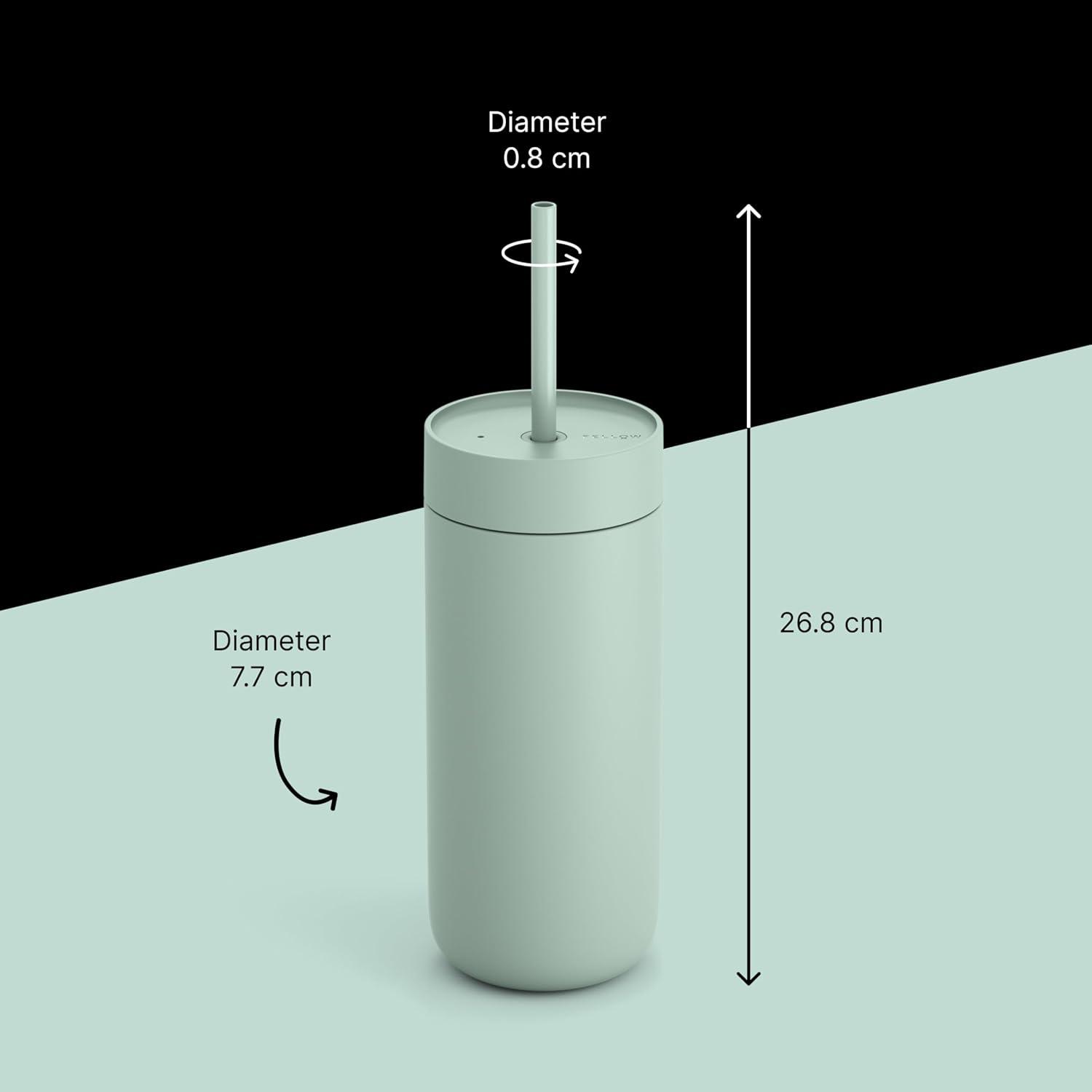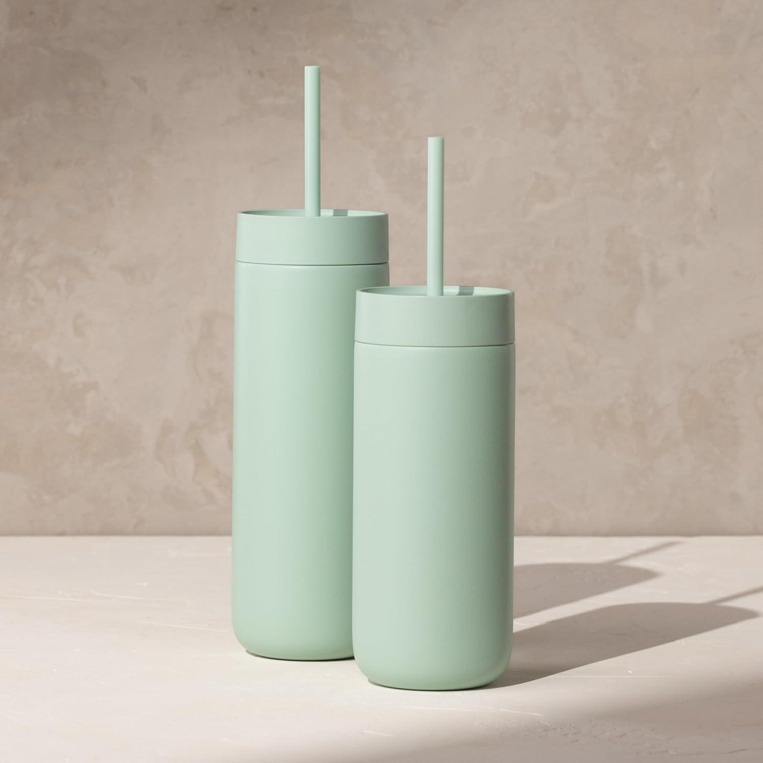 Fellow 20 oz Carter Cold Water Bottle for Water, Iced Tea, Coffee, Smoothies, Iced Coffee & more - Stainless Steel Vacuum-Insulated Iced Coffee tumbler with Spill Resistant lid and straw - Sand Dune(Mint Chip)