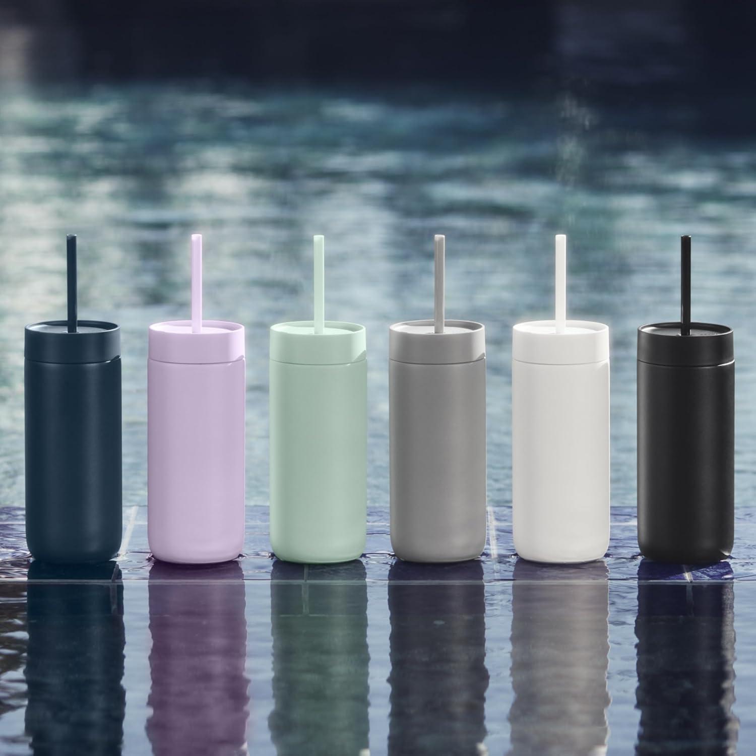 Fellow 20 oz Carter Cold Water Bottle for Water, Iced Tea, Coffee, Smoothies, Iced Coffee & more - Stainless Steel Vacuum-Insulated Iced Coffee tumbler with Spill Resistant lid and straw - Sand Dune(Peri Twinkle)