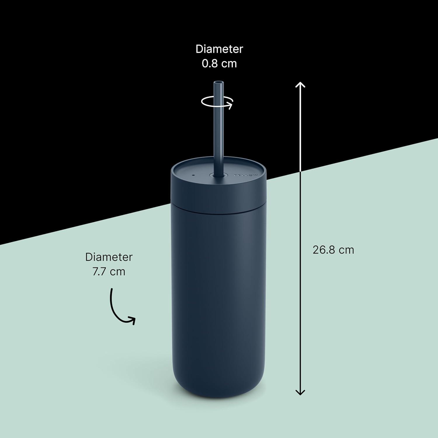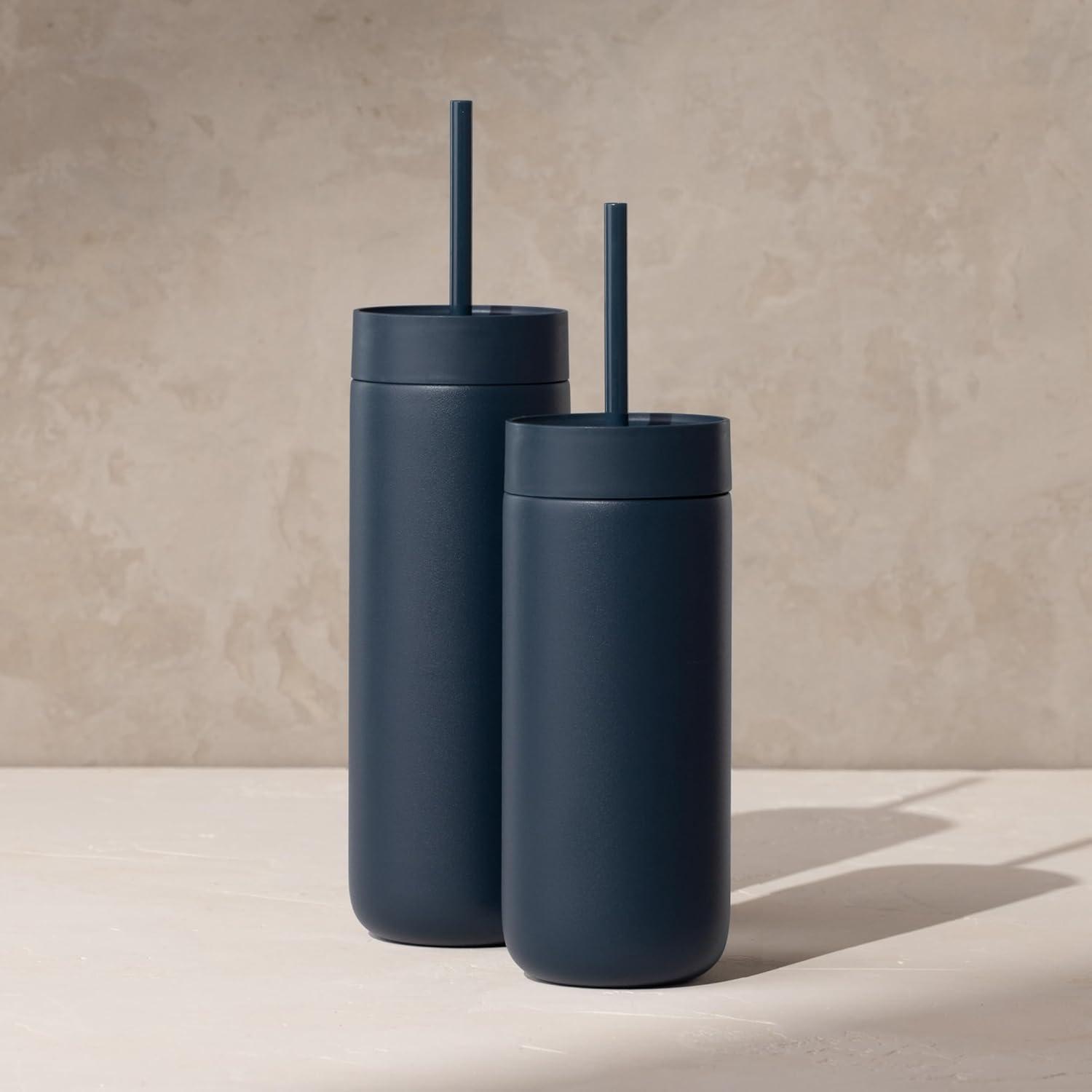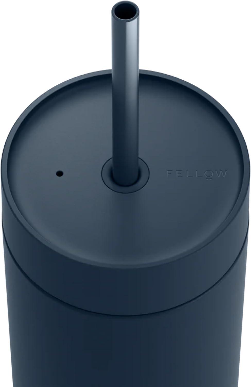 Fellow 20 oz Carter Cold Water Bottle for Water, Iced Tea, Coffee, Smoothies, Iced Coffee & more - Stainless Steel Vacuum-Insulated Iced Coffee tumbler with Spill Resistant lid and straw - Sand Dune(Stone Blue)