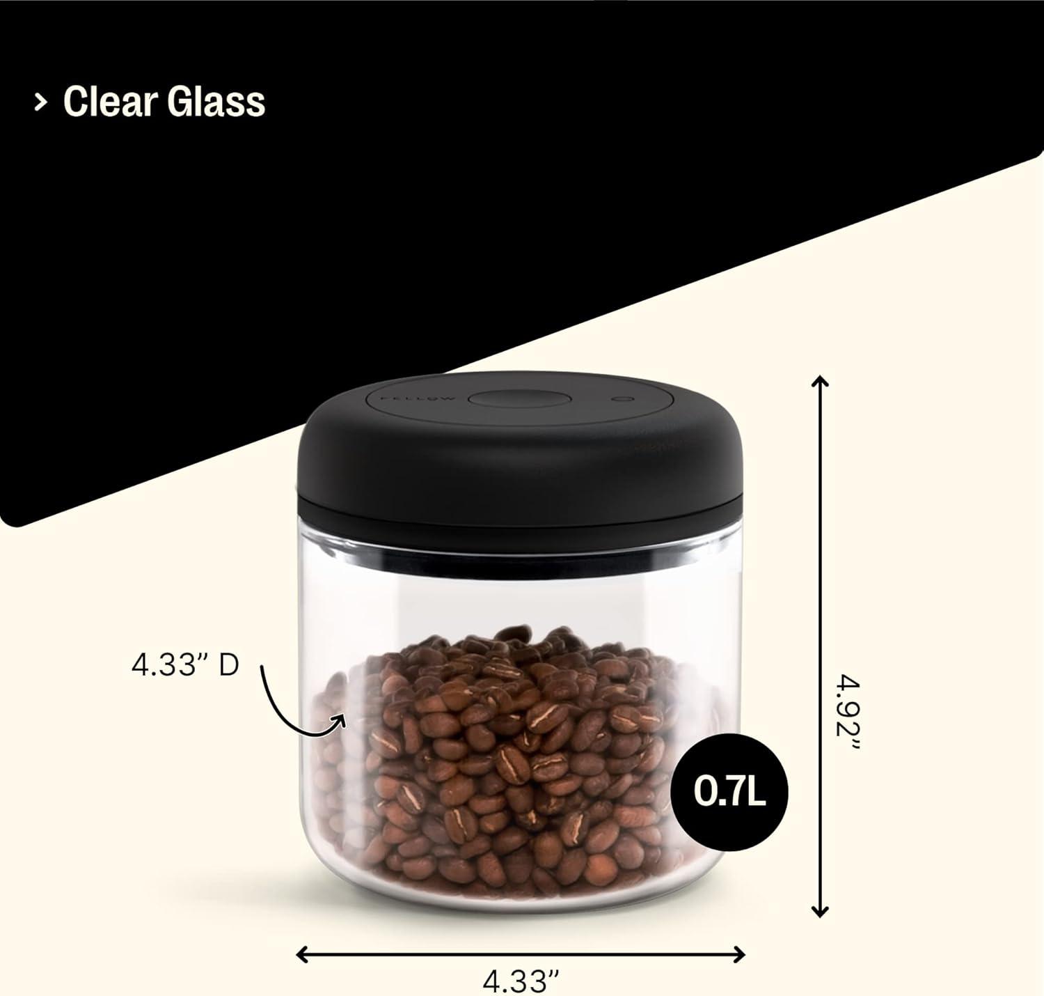 Fellow Atmos Vacuum Coffee Canister & Food Storage Container - 0.7 Liter Canister holds up to 11 oz of Coffee Beans - Airtight Food Storage Containers - Coffee Containers - 0.7 Liter - Matte Black(Clear Glass)