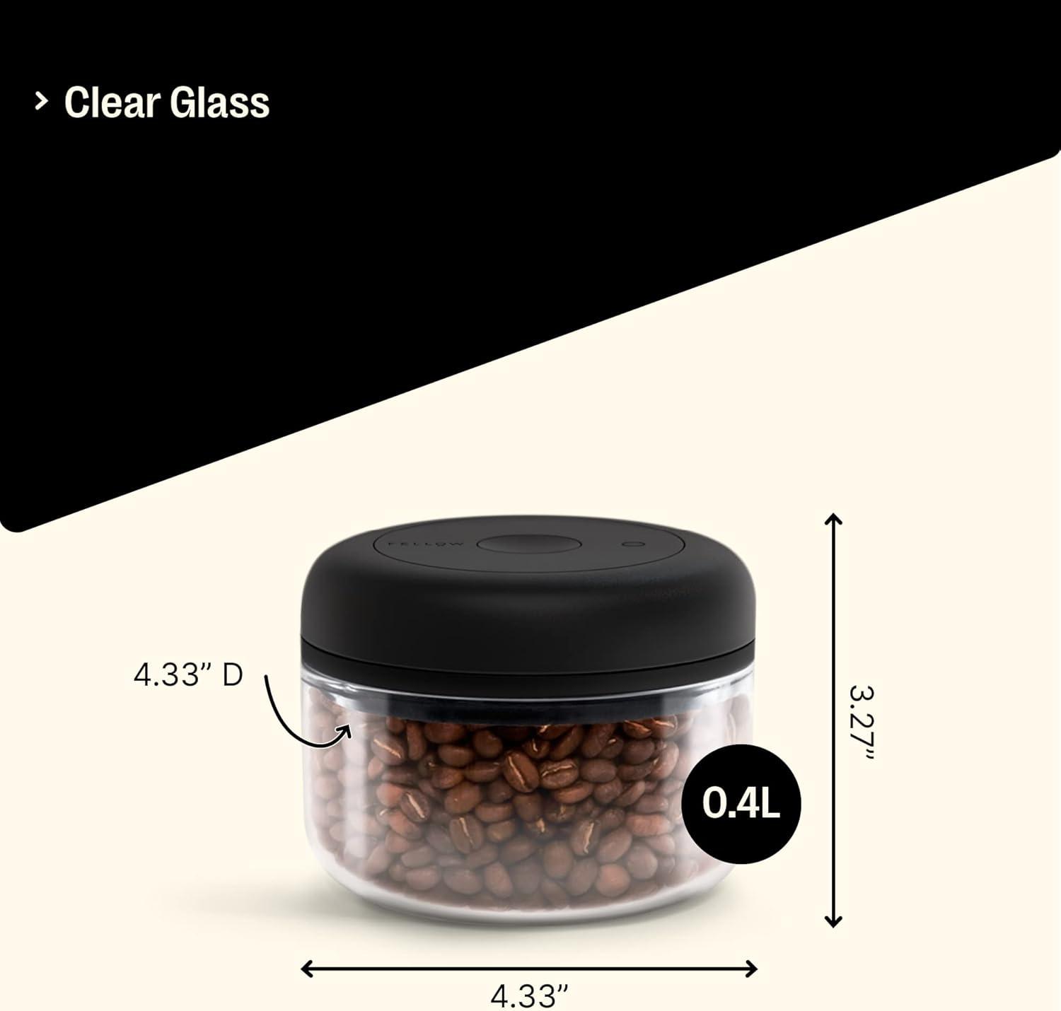 imageFellow Atmos Vacuum Coffee Canister ampamp Food Storage Container  07 Liter Canister holds up to 11 oz of Coffee Beans  Airtight Food Storage Containers  Coffee Containers  07 Liter  Matte BlackClear Glass