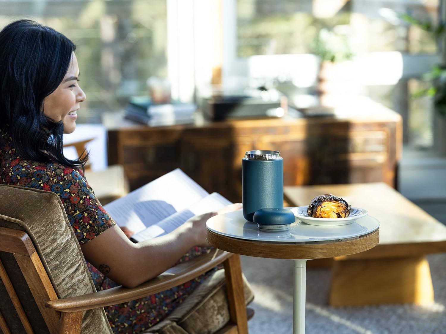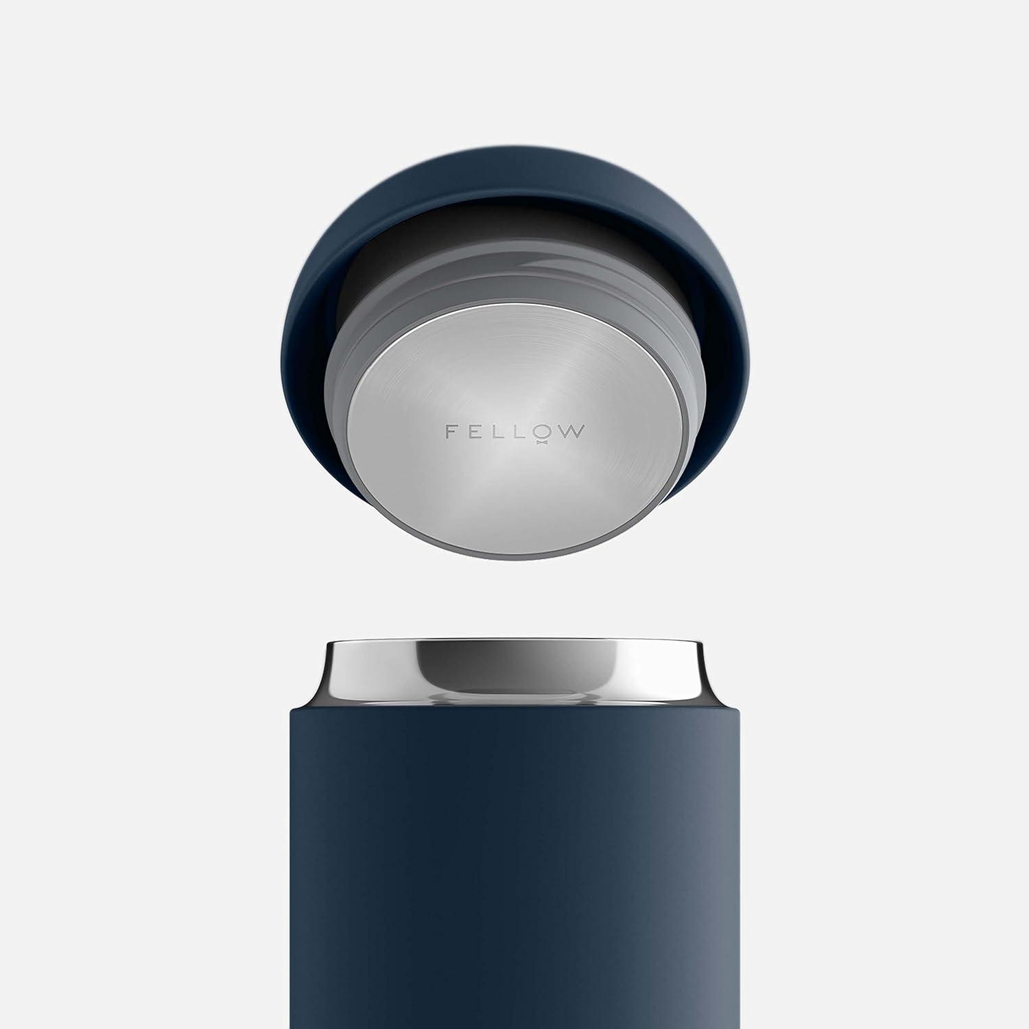 Fellow Carter Coffee Mug 16 oz For Travel – Wide Mouth Vacuum-Insulated Stainless Steel Tea and Coffee Tumbler with Ceramic Interior – Matte Black(Stone Blue)