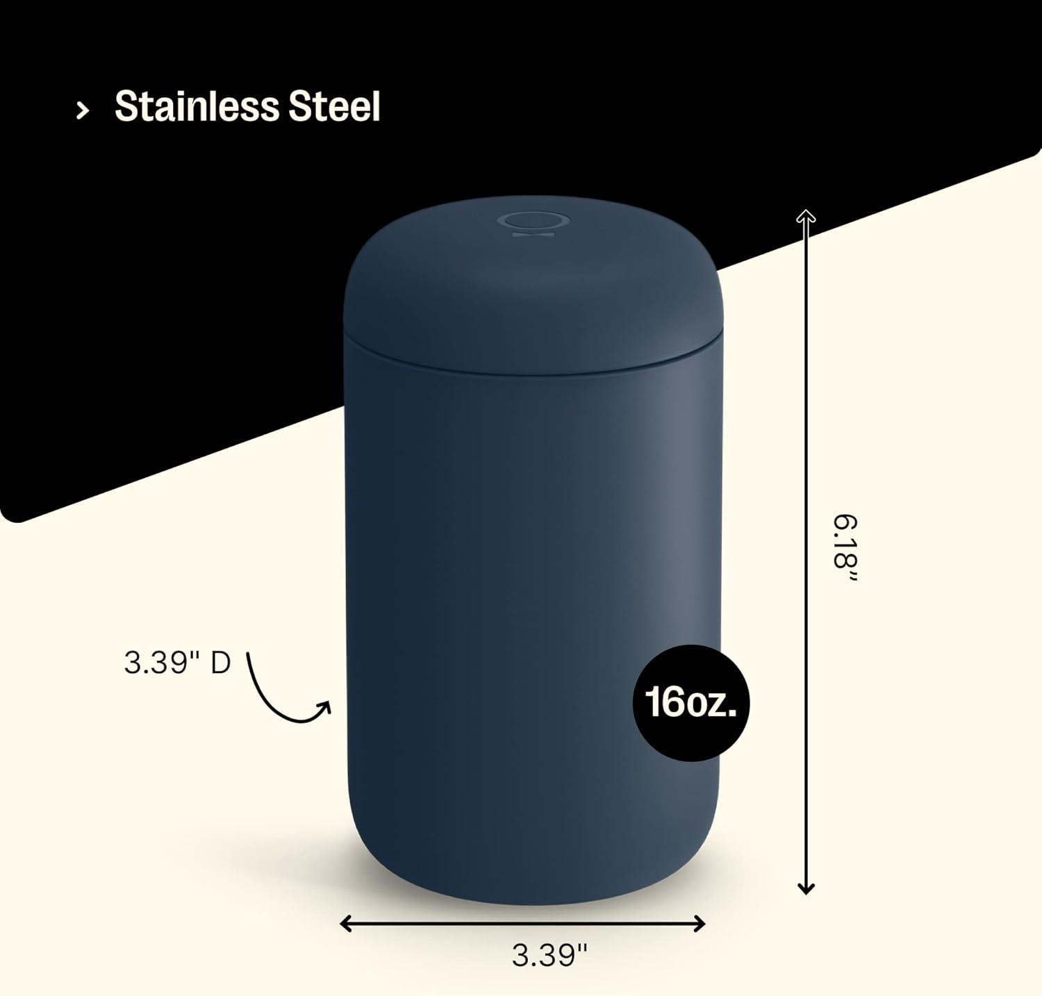 imageFellow Carter Coffee Mug 16 oz For Travel  Wide Mouth VacuumInsulated Stainless Steel Tea and Coffee Tumbler with Ceramic Interior  Matte BlackStone Blue