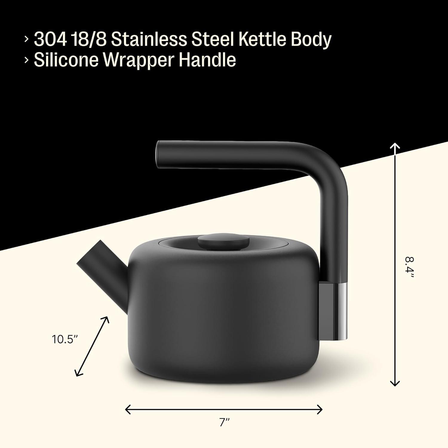 CLYDE STOVETOP TEA KETTLE – A stainless steel teapot that marries a modern design with flawless functionality for the ultimate brewing experience; Make a statement in your kitchen with this matte black designer kettle