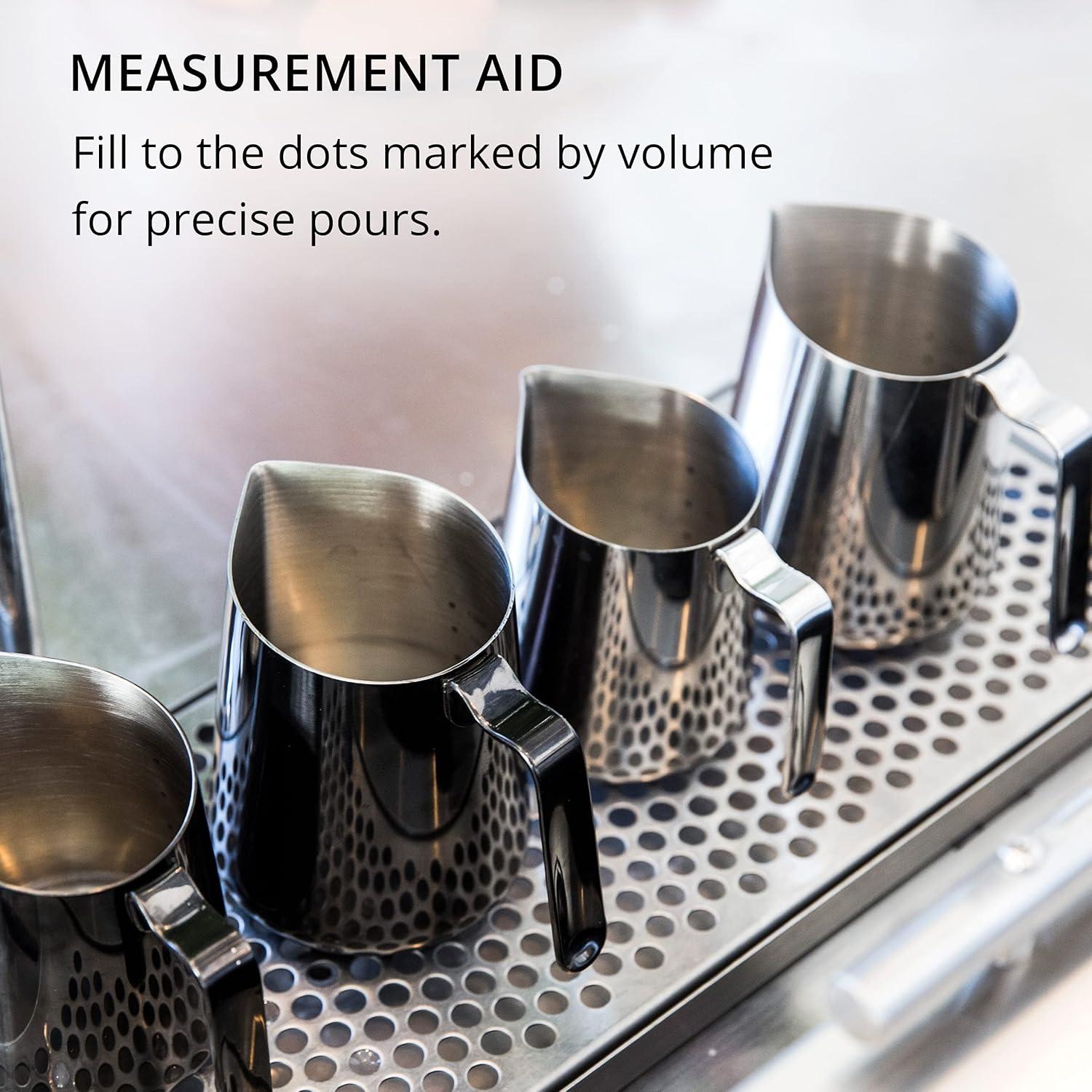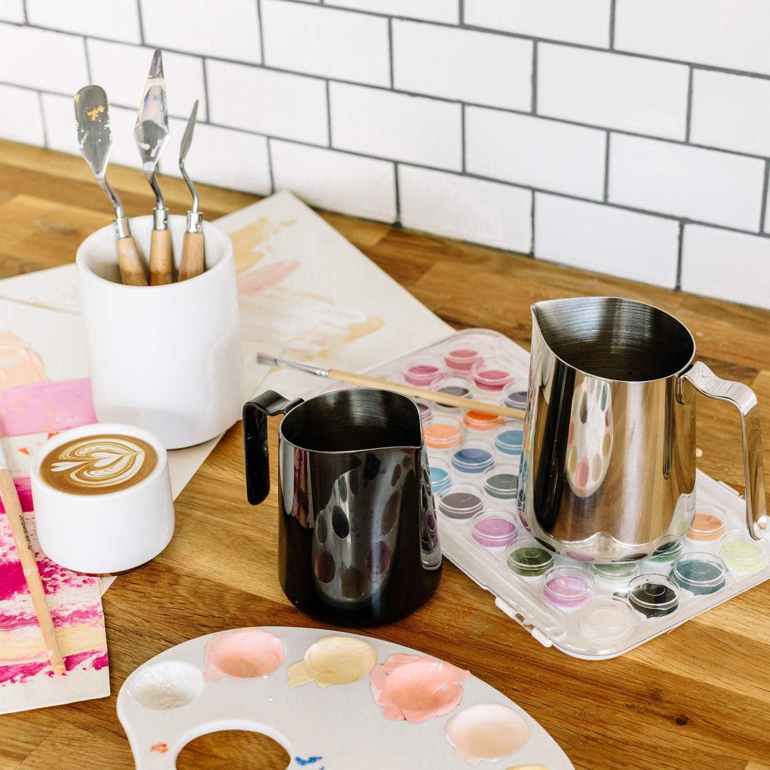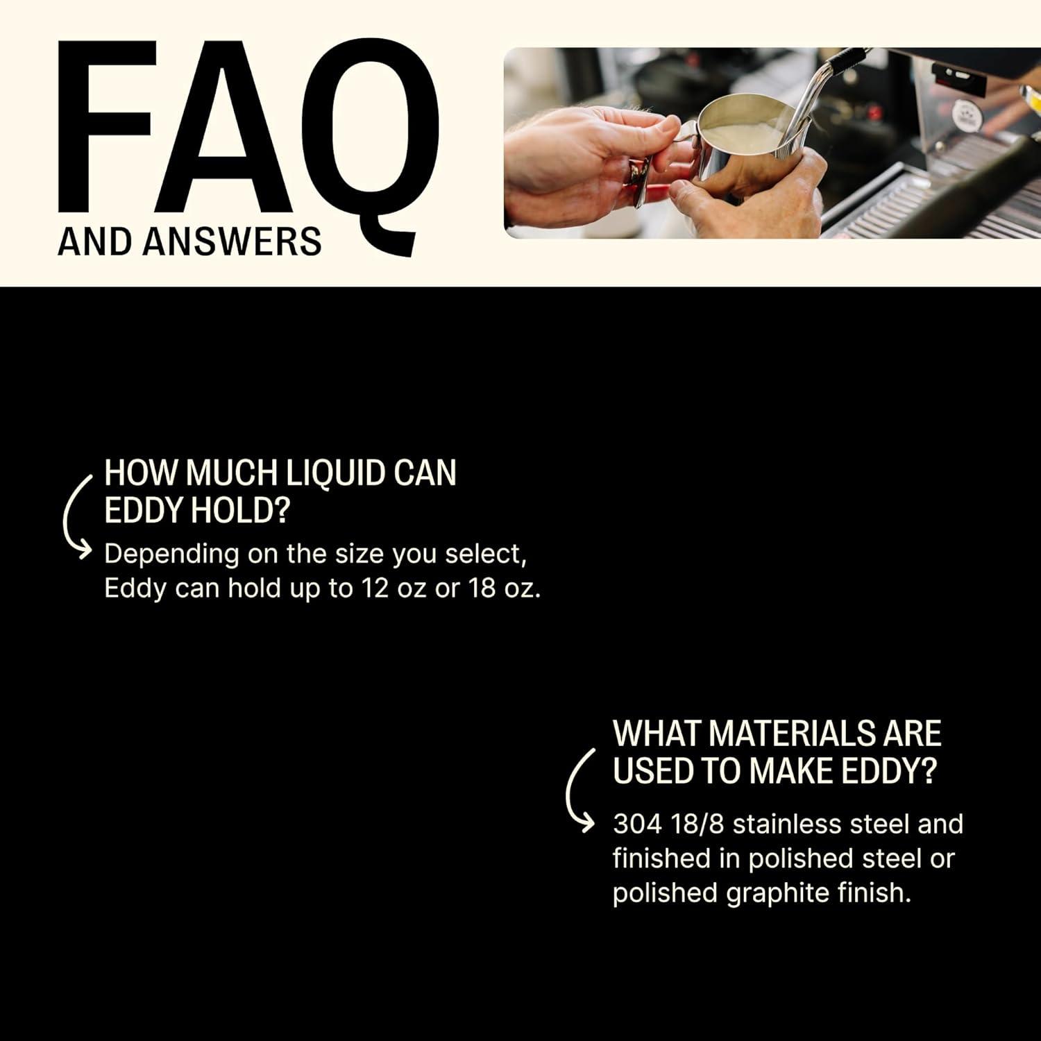 EDDY STEAMING PITCHER – The barista's paintbrush for pouring precise latte art; The fluted spout, unique sharp front crease, and tapered body work in tandem to Monet your milk
