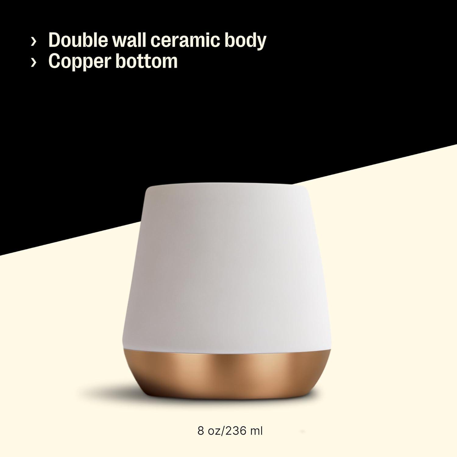 STUNNING COFFEE MUG – Joey's sleek, polished copper bottom complements the matte white ceramic finish making this demitasse a work of art and your go-to mug when entertaining