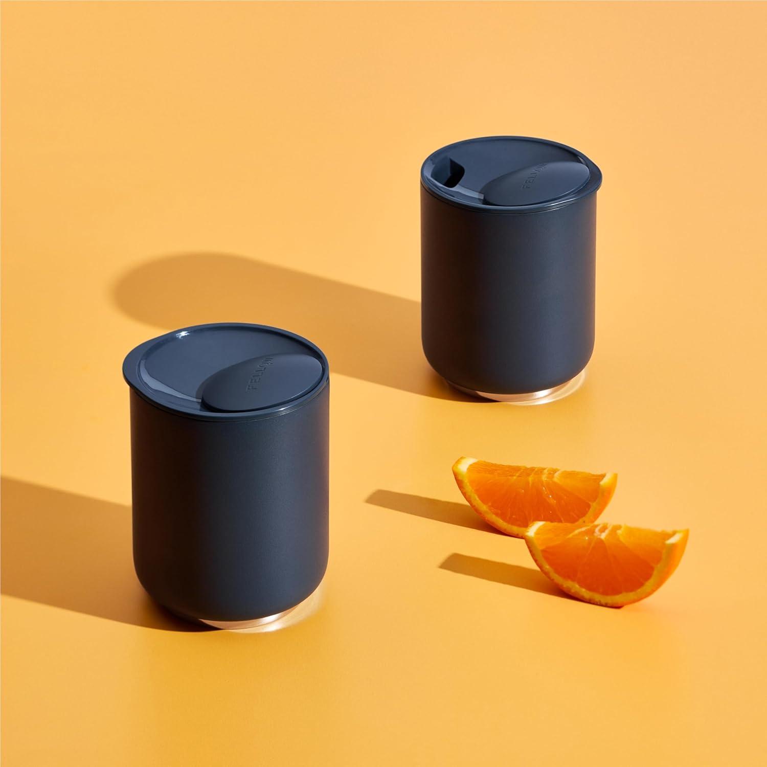 Fellow Rocky Lowball Tumbler Set of 2 – ​​Insulated Stainless Steel Cocktail Tumblers with Ceramic Interior and Swivel Pebble Lid – 10 oz, Stone Blue(Stone Blue)