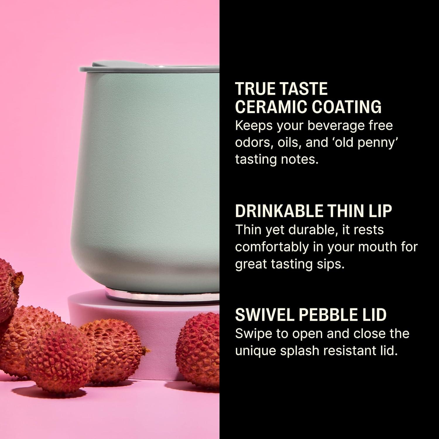 Fellow Ruby Wine Tumbler Set of 2 – ​​Insulated Stainless Steel Wine and Cocktail Tumblers with Ceramic Interior and Swivel Pebble Lid – 12 oz, Mint Chip(Mint Chip)