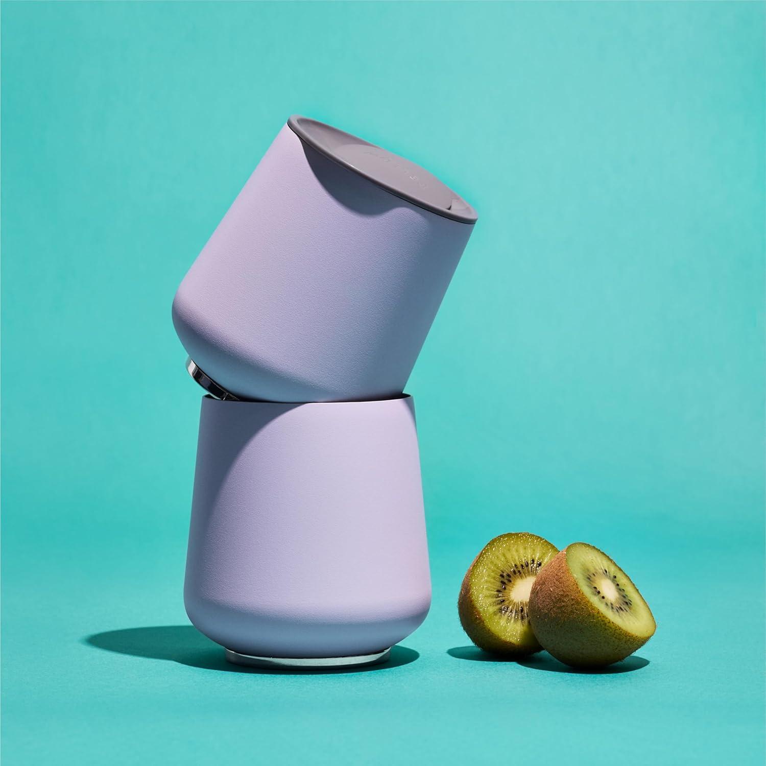 Fellow Ruby Wine Tumbler Set of 2 – ​​Insulated Stainless Steel Wine and Cocktail Tumblers with Ceramic Interior and Swivel Pebble Lid – 12 oz, Mint Chip(Peri Twinkle)