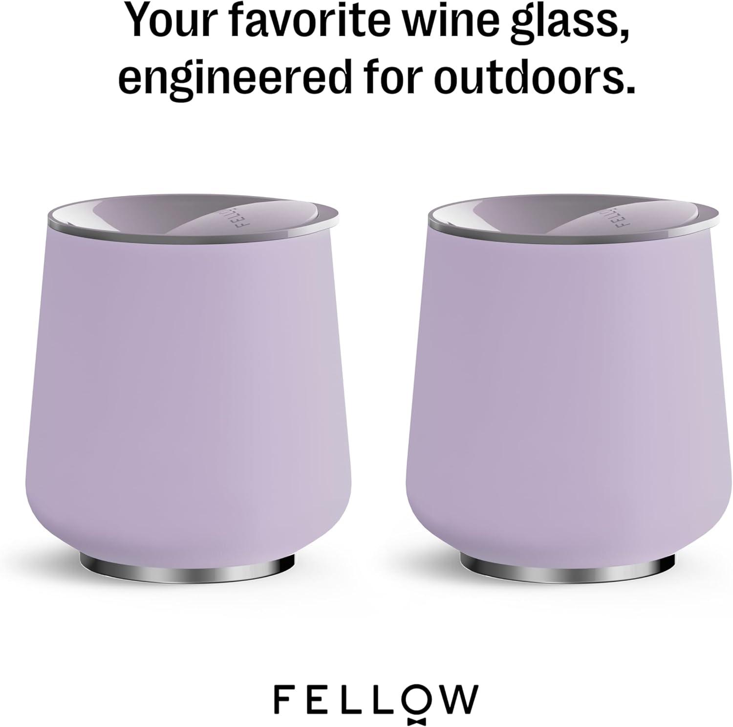 Fellow Ruby Wine Tumbler Set of 2 – ​​Insulated Stainless Steel Wine and Cocktail Tumblers with Ceramic Interior and Swivel Pebble Lid – 12 oz, Mint Chip(Peri Twinkle – Pack of 2)