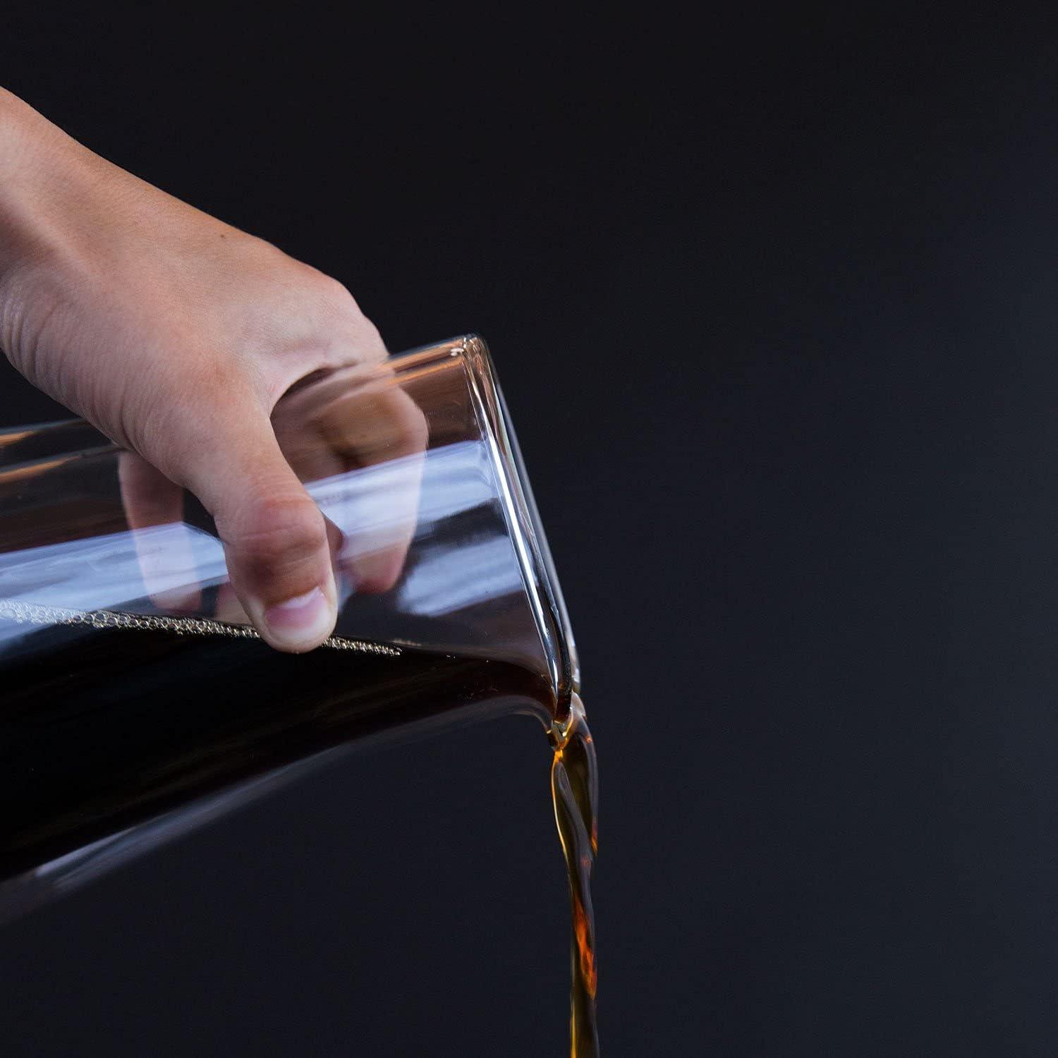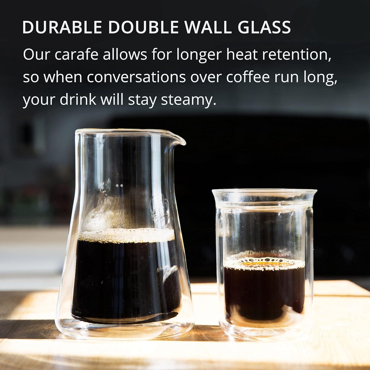 HAND BLOWN GLASS – Strong and durable heat-resistant decanter; thick borosilicate glass helps maintain your coffee's heat longer than your average glass carafe