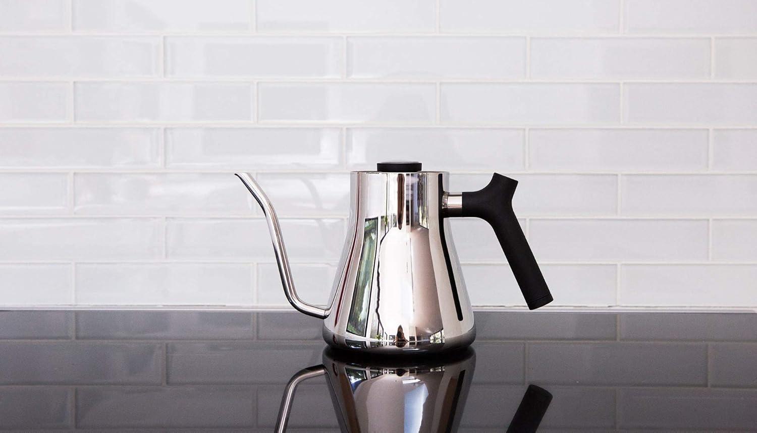 Fellow Stagg Stovetop Pour-Over Coffee and Tea Kettle – Gooseneck Teapot with Precision Pour Spout, Built-In Thermometer, Matte White, 1 Liter(Polished Steel)